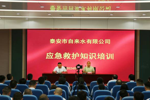 ?? ???? ?為增強全體干部職工的應急救援能力,筑牢生命安全防線,8月14日,泰安市自來水有限公司精心組織了一場別開生面的應急救護知識培訓,活動特別邀請應急救護領域的資深專家——山東省紅十字會應急救護培訓師、普外科主治醫師陳東老師前來授課。泰安市自來水有限公司黨委書記、執行董事申立堂同志,公司黨委副書記、總經理丁合同志,安全總監劉偉同志出席活動,各部門單位主管、班組長和安全員參加培訓。