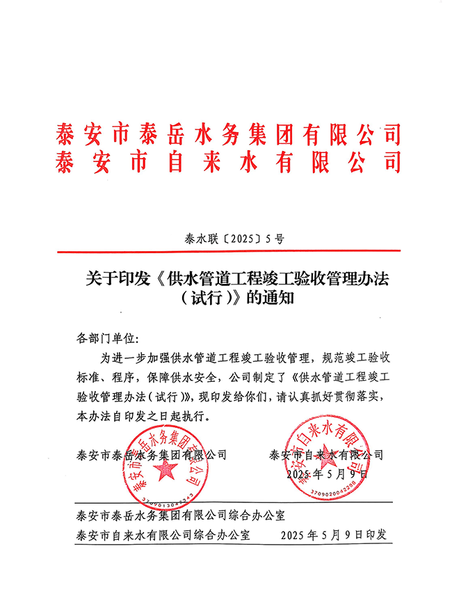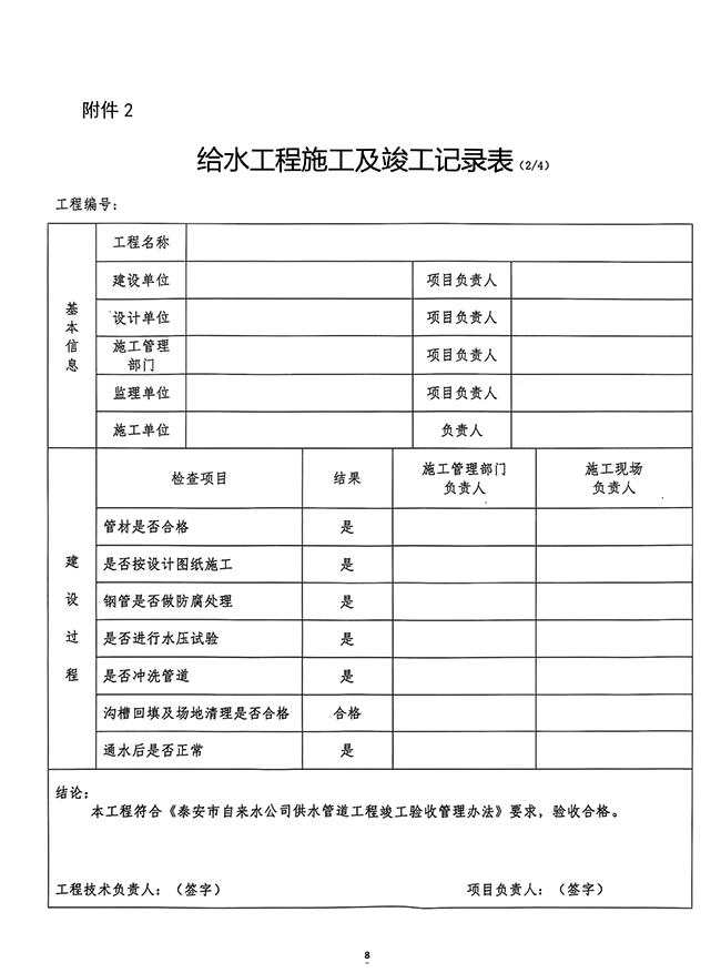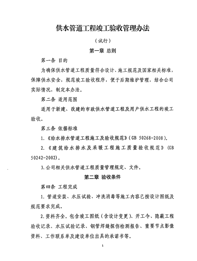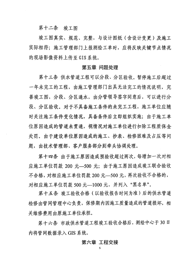 您當前位置》政策法規(guī)》泰安市自來水有限公司給水管道工程施工及驗收規(guī)定